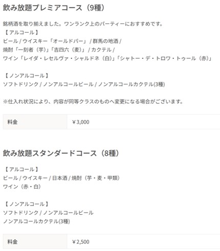 ■同窓会プラン(2H飲み放題付 ¥7,000)